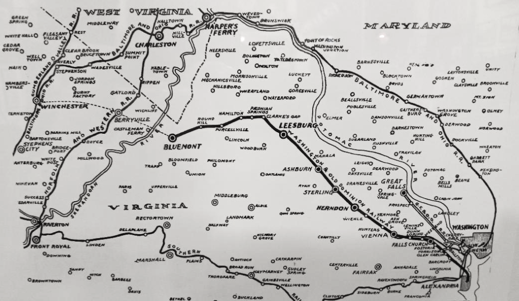 The Washington and Old Dominion Railroad started in Alexandria, and went all the way to Bluemont, Virginia, just short of the Appalachian Mountains. Closing in 1968, the railroad right of way is now used by Dominion energy as a power line corridor, and the Washington and Old Dominion trail, a popular bike and walking trail run by NOVA Parks.